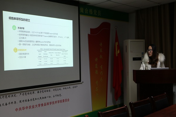 研究生会协办的学术晚茶活动第三场在食科楼445如期举行。汇报人陈梦蝶以“色氨酸对脂多糖介导的肠道屏障紧密连接损伤的影响”为题,在如今脂多糖水平的肠通透性疾病不断升高的背景下,选择Caco-2细胞构建细胞单层模型,以此为基础将试验分为了色氨酸保护组与色氨酸修复组两个部分,来研究比较色氨酸对模拟肠道屏障紧密连接的完整性、通透性及相关基因蛋白通路等的影响。食科院有多名研究生参加了此次报告会,并积极交流,踊跃提问,整个报告会气氛和谐,学术氛围浓厚。