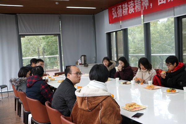 的李淇介绍了由纤维素纳米纤维稳定的新型皮克林乳液的乳化性能和界面行为。在每位同学讲解结束后,各位老师和现场的研究生都针对其研究内容进行了提问和互动交流。报告会结束后,代表们在食科院阳光房又举行了学术茶话会活动,针对各个高校的学术文化等方面的内容进行了更深入的学术交流。食科院也为参加报告会的优秀学生们颁发了纪念品并合影留念。