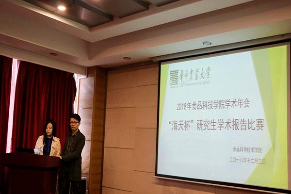 食品科技学院“海天杯”研究生学术年会—学术报告比赛在食科楼504举行,共有9名优秀硕博研究生带来精彩汇报,食科院近百名师生参与了此次学术盛宴。