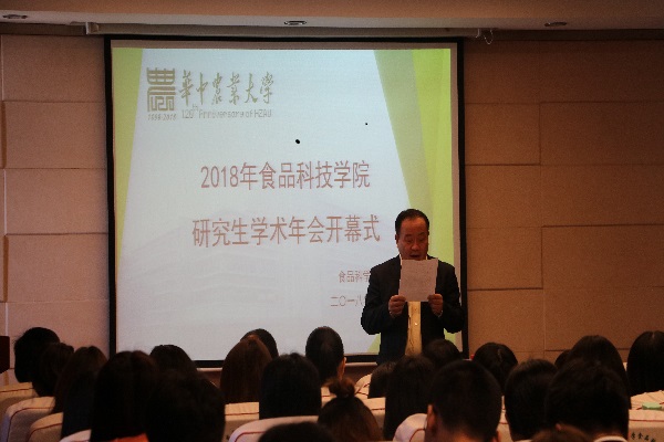 核心提示:10月30日上午,2018年食品科技学院研究生学术年会开幕式暨特邀专家报告会正式拉开帷幕,开幕式由马美湖教授主持,众多研究生积极参加。 校党委研工部副部长涂俊才老师出席开幕式并致辞,江南大学金征宇教授作为特邀专家围绕“我国食品工业发展现状、趋势与技术要求”主题作了精彩报告。