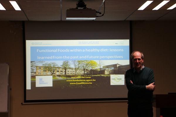 核心提示:4月6日晚7点,来自比利时根特大学食品化学与人类营养研究组(nutriFOODchem)的John Van Camp教授做客我校食科院教授名师学术报告会,进行了题为:“Functional foods within a healthy diet——Lessons learned from the past and future challenges”的精彩报告,吸引了众多师生前来聆听。