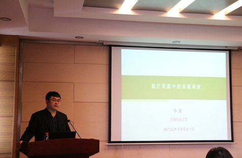 内容提要:1125号上午10点,甘肃农业大学副校长、教授、博士研究生导师受邀做客我校食品科技学院教授名师学术报告会,进行了题为“腐烂果蔬中的真菌毒素”的精彩报告,吸引了众多师生前往聆听。