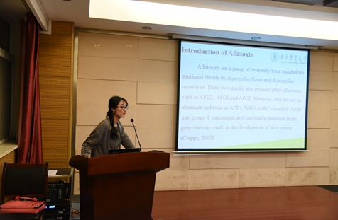 马兰首先对黄曲霉毒素,噬菌体展示进行背景介绍,随后详细描述如何从环七肽库中筛选到能和黄曲霉毒素特异性结合的噬菌体短肽,她还和大家分享自己从肽库中筛选短肽所遇到的困难,解决问题的思路与方法,建议大家做实验多读文献多思考。她说,应用噬菌体肽库的检测方法是一种安全绿色的检测方法,在检测黄曲霉毒素方面有很好的发展前景。