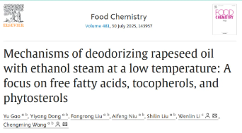 Food Chemistry|低温乙醇蒸汽对菜籽油进行除臭的机理:以游离脂肪酸、生育酚和植物甾醇为主