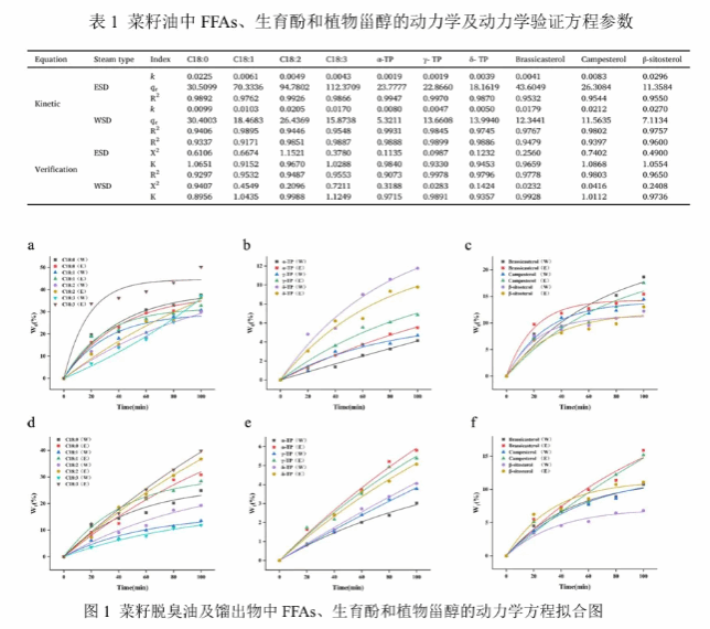 脱臭是食用油精炼中承担食用油安全的最后关卡,严重影响着食用油品质。传统脱臭依赖高温(250℃)水蒸汽,虽能去除游离脂肪酸等异味成分,但高温易引发油脂氧化、营养流失,甚至生成新的有害物质。如何低温高效脱臭且最大化保留营养成分和抑制有害物质生成成为油脂精炼领域的重要课题。近年来,团队对低温(180℃)乙醇蒸汽脱臭技术的提出有望化解这一难题,但脱臭过程中物质与蒸汽相互作用机制的理解尚不充分,限制了脱臭技术的进一步优化和创新。那么,利用动力学与热力学模型,预测油脂脱臭效率、优化脱臭工艺参数、并结合馏出物分子结构和水蒸汽蒸馏作用特点阐明乙醇蒸汽脱臭机制,是一种创新的研究思路。