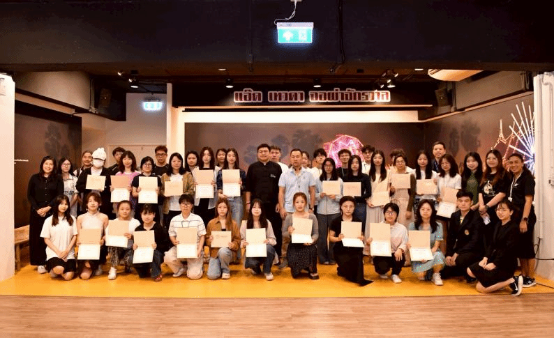 同时,在泰方陪同下团队一行前往曼谷著名景点龙婆托广场、国家艺术博物馆等地。通过体验曼谷本土特色文化市集,感受泰式饮食文化的多样性。在博物馆展区内了解泰国不同历史时期的艺术表现形式,通过孔剧演出沉浸式体验深入了解泰国的历史文化以及艺术传承。食安专业的鲁雨函同学表示通过一系列的文化活动,不仅学习日常用语,了解泰国的礼仪与风俗,还增强了对泰国文化的理解与尊重。在历史文化中深切体会到各美其美,美人之美,美美与共,天下大同的深刻内涵。