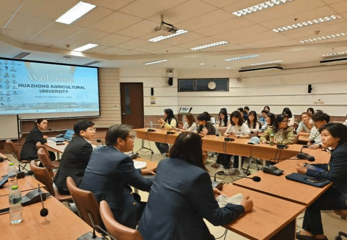 联合园艺林学学院,由园艺林学学院副教授王滑带领39名本硕博学生,以中泰建交50周年契机,赴泰国曼谷泰国农业大学(Kasetsart University)开展学术交流与访学活动。此次访学聚焦食品科学与工程、水产食品加工、食品安全管控等核心领域,通过校园参访、校园课堂体验、实验室交流、实地调研、学术研讨等多种形式,进一步深化两校专业合作,助力学生拓宽国际视野、提升专业素养。