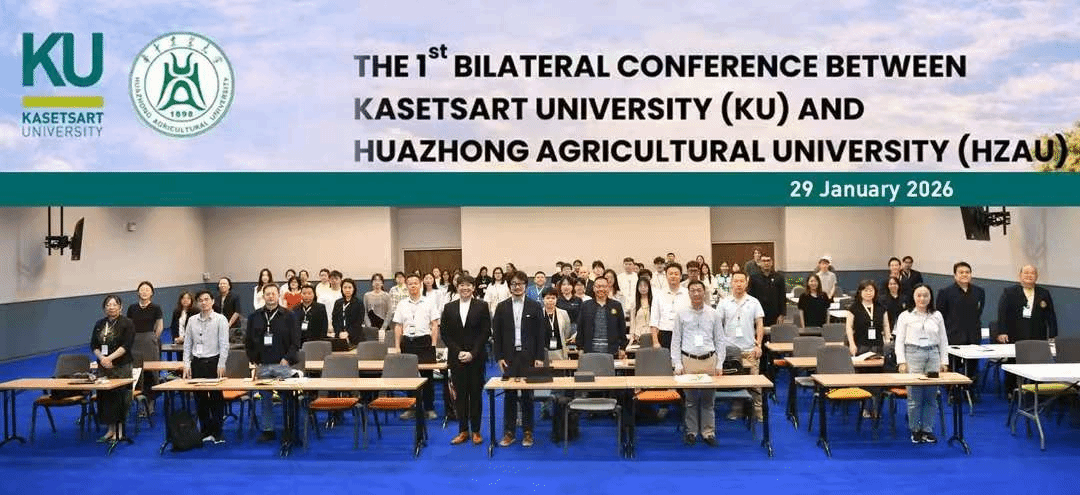 王珊教授、尹涛副教授与张涛副教授出席。会议围绕可持续发展、健康保障与创新变革,聚焦全球贸易韧性背景下的农业生态创新,以及贸易格局中 “同一健康” 理念与食品技术的融合发展等议题展开研讨。双方学者以 “创新协同增效,共建韧性农业” 为主题,在园艺、水产、食品科学等领域进行深入交流。与会中泰学子结合各自研究方向踊跃发言、积极探讨,现场学术氛围浓厚、互动热烈。会后本科生伍悦妍深有感触,“研学的核心价值,在于跳出固有认知的边界,接触前沿的学术理念与实践模式。在双边会议上,“同一健康” 理念与食品创新的深度融合让我深受启发。站在更大的农业视角来看食品健康从来不是孤立的课题,而是串联起人类、动物、生态环境的系统性工程。泰国农业大学将这一理念融入农业生产、食品加工的全链条,为解决贸易动态下的食品营养问题提供了新思路,立足生态协同的视角,让科研更具现实价值。”