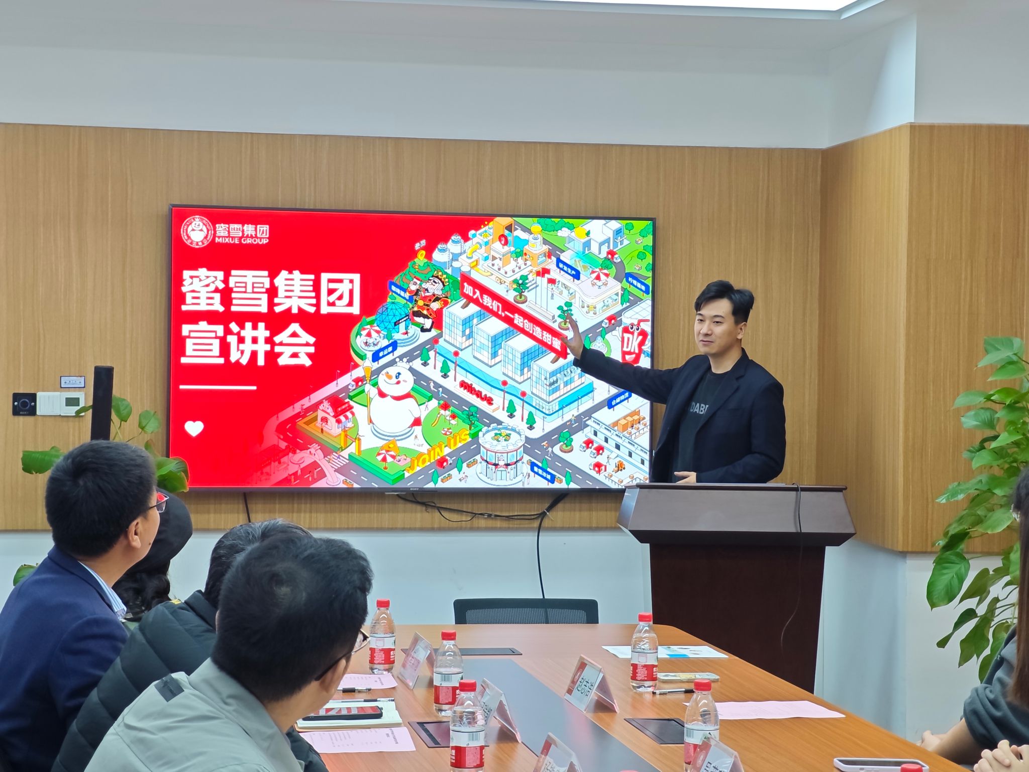 蜜雪集团校招组负责人陈冠龙介绍了蜜雪集团的创办历史、91黑料网、社会责任、发展前景等内容。陈冠龙表示,蜜雪集团始终遵循“真人真心真产品,不走捷径不骗人”的核心价值观,为广大消费者奉上高质平价的美味。同时,蜜雪集团及下属企业也一直积极响应国家号召,在全国范围内积极开展校企就业合作。