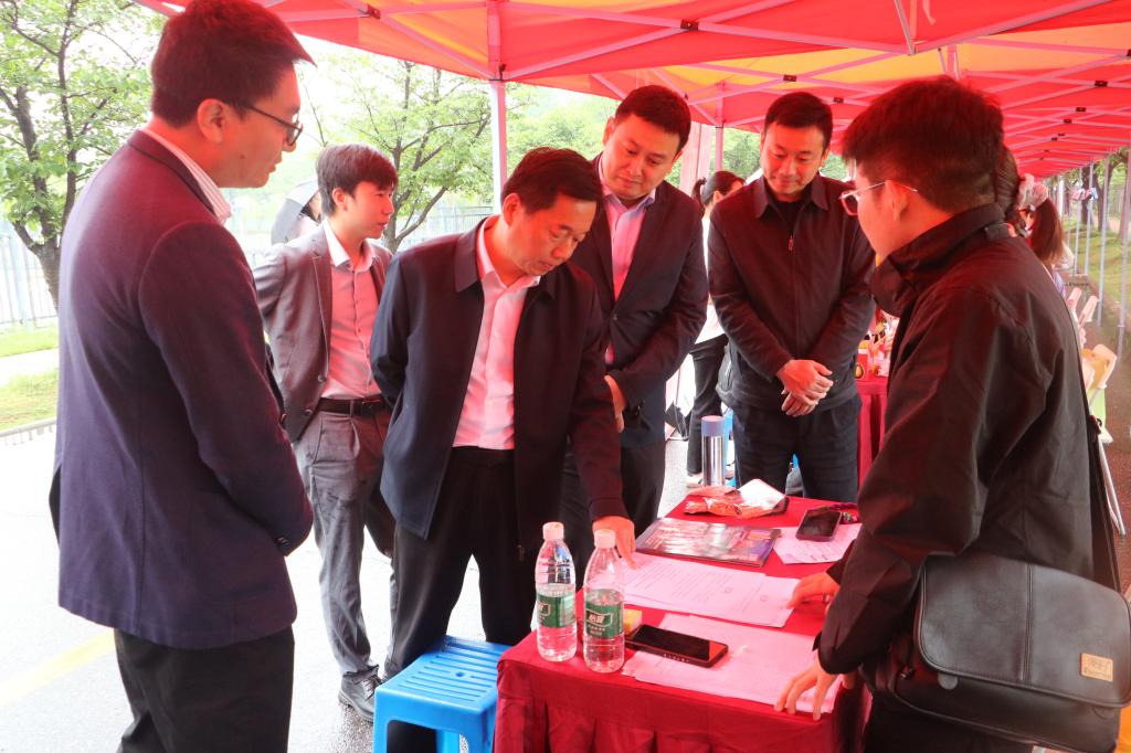 杨书记和吕书记等陪同,了解企业用人需求、招聘岗位的设置数量、毕业生的求职意愿和签约情况,鼓励毕业生理性规划职业生涯,积极了解求职企业投递简历。