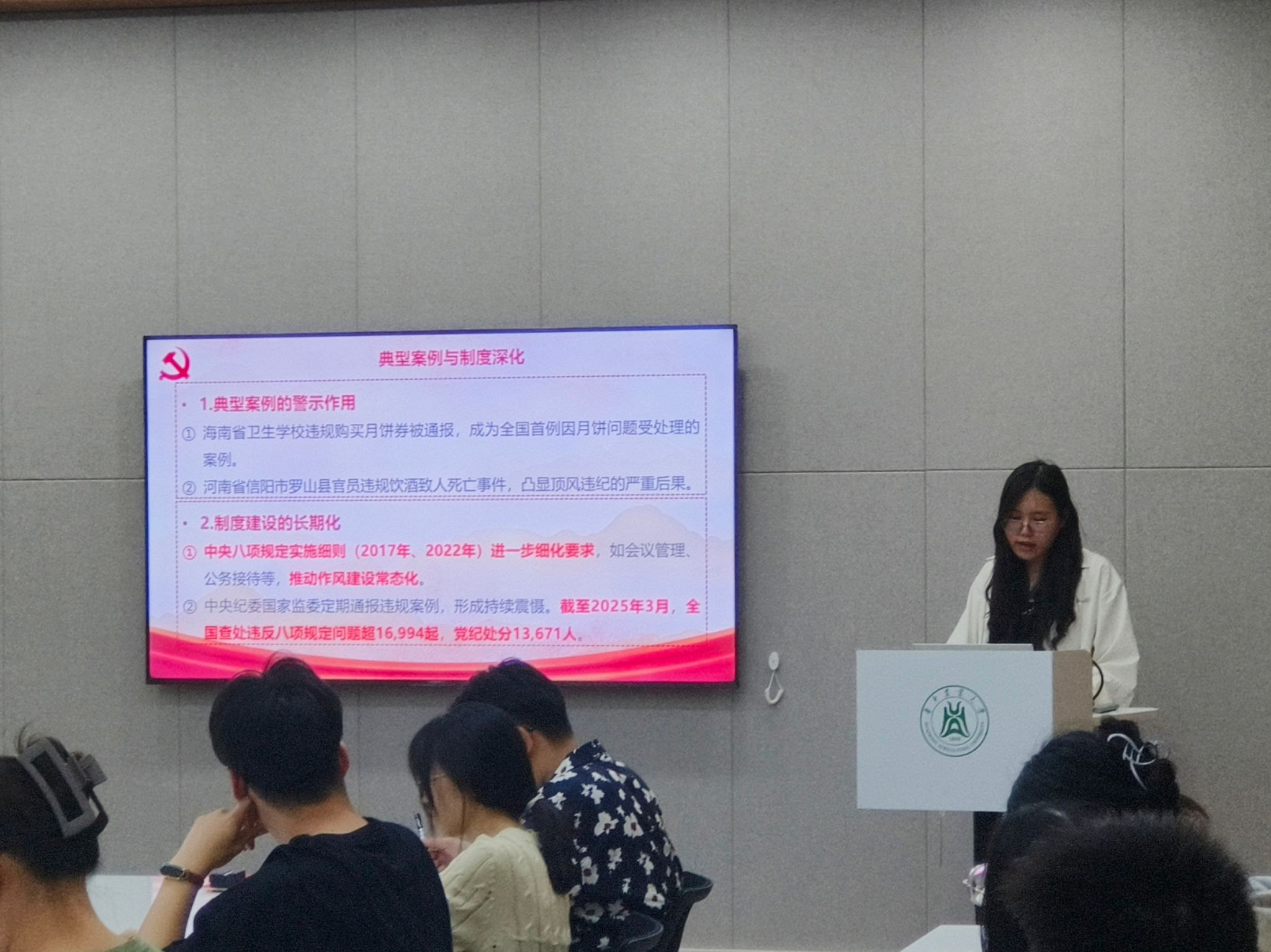 程婕同志带领支部成员深入学习重要文章《八项规定改变中国》(孙雅诗 摄)