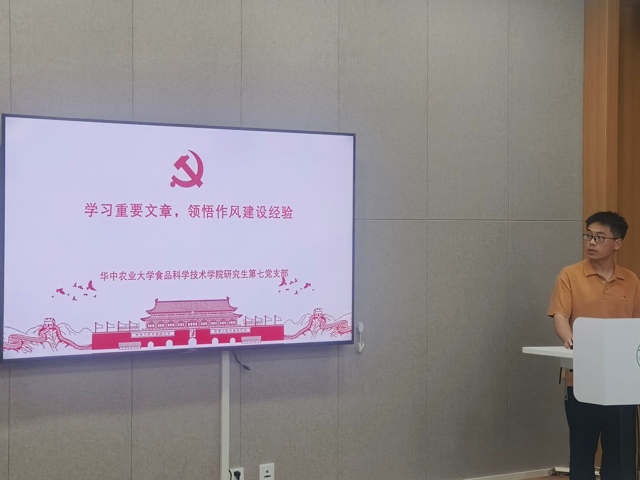 研究生第七党支部于工科楼122会议室开展了“强信念,促作风”主题党日活动,刘石林副院长出席会议。此次主题党日活动由第二党小组领学,本次会议以“强信念,促作风”为主题,旨在深入学习贯彻党的中央八项规定精神,学习大别山精神、抗洪精神、抗疫精神的丰富内涵和精神实质。