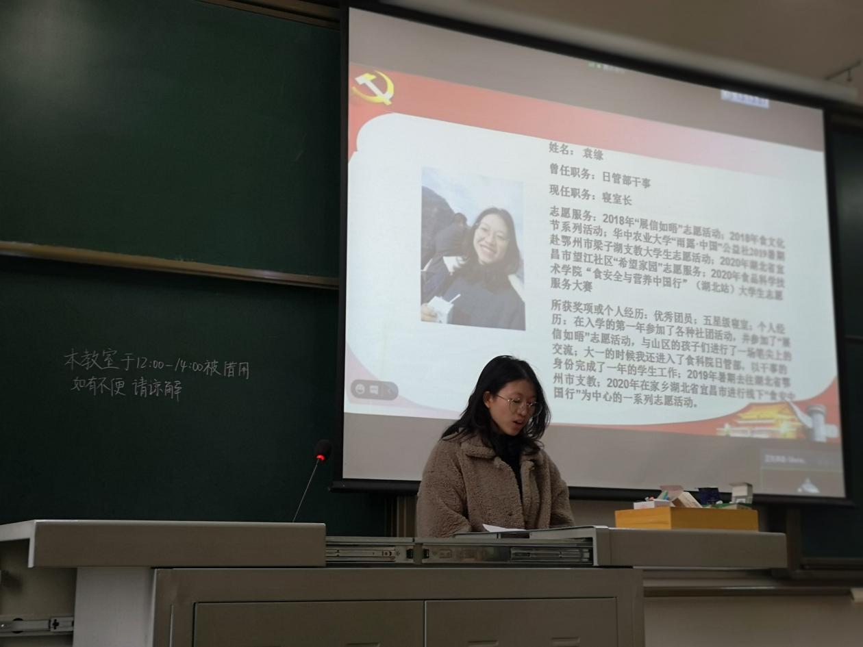 首先,支部副书记张越黄对今年的党员发展工作变化作出了解释,并概述了今年的重点工作。她认为站在中国共产党成立100周年的关键节点上,部党员要以此为契机,认真学习四史,加强理论知识积累,“办实事,勇担当”。