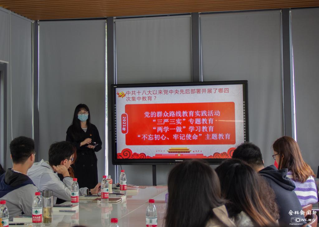 胡晓娴也表达了自己的看法。她认为,学习四史是输入的过程,但也需要有输出的过程。她谈到“当学四史于书本,思四史于见行”,需要在学习中思考实践,总结自己的经验。来自第一党支部的易子涵则表示,学习党史可以加强党性修养,同时介绍了学习党史的方法。随后她号召党员同志在回望党史中开创未来,接过历史的接力棒,走好新时代的农业报国路。
