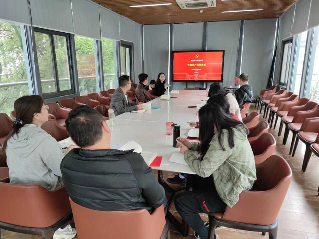 首先,支部成员胡小娱进行领学。她聚焦“中国共产党的创建”这一主题,以近代史为开端,从近代中华民族的历史任务、五四运动和马克思主义的传播以及中国共产党的成立三个部分,用丰富的图片、视频等史料带领大家回顾了近代以来中华民族最屈辱的那段历史以及仁人志士为救亡图存的种种尝试,分析了十月革命对中国产生深远影响的原因和中国工人阶级的优势,阐释了五四运动爆发的背景和历史意义,讲解了陈独秀、李大钊等在中国传播马克思主义和中国共产党的早期组织建立的历史过程,还原了中共一大召开时的历史场景,通过一系列史实的讲解和党史故事的讲述,阐明了历史和人民选择中国共产党的必然性。