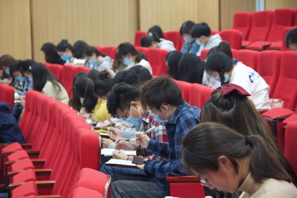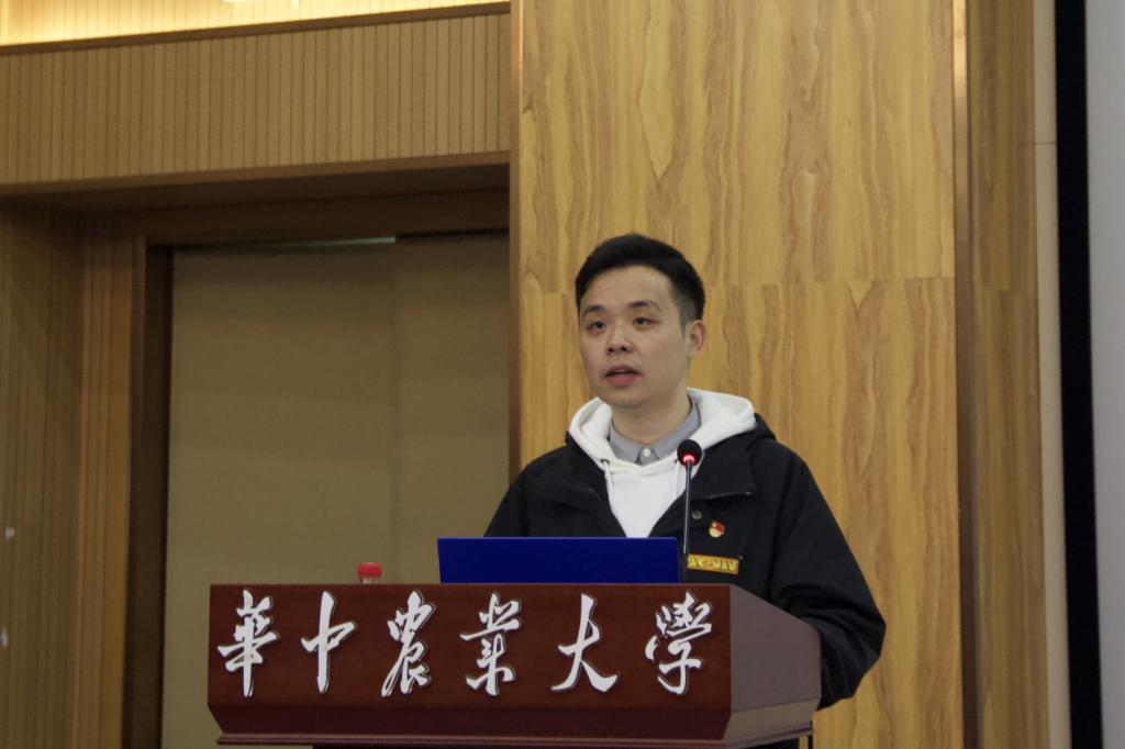 于生科楼103报告厅召开党史学习教育推进会暨专题党课,此次活动线上线下同步进行,食科院党委书记杨铁贵、党委副书记向异之到场参加,研究生、本科生党员和积极分子共计400余人听取了此次专题党课。会议由学院兼职辅导员、学生党建办主任李虎主持。