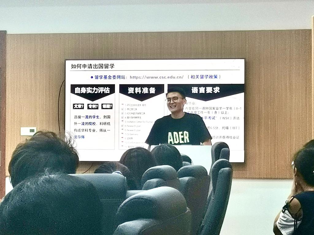 博士生杨超师兄就自己的副主席学生工作以及研究生生活与现场的各位同学们进行了亲切的交流。杨超师兄结合自身的学习经历,告诉大家要潜心科研,在科研的过程中要不断的寻找乐趣,找到学习和娱乐的平衡点,毫无保留的分享了精读和泛读的高效阅读文献方法。祝福大家能在迷茫中前进,在迷茫中坚定,做一个自带掌声的人!“兴趣是最好的老师,一定要培养自己的科研兴趣,才能在科研的道路上越走越顺利。”这是新生在谈及确定读博意向时他给出的最坚定的答案。