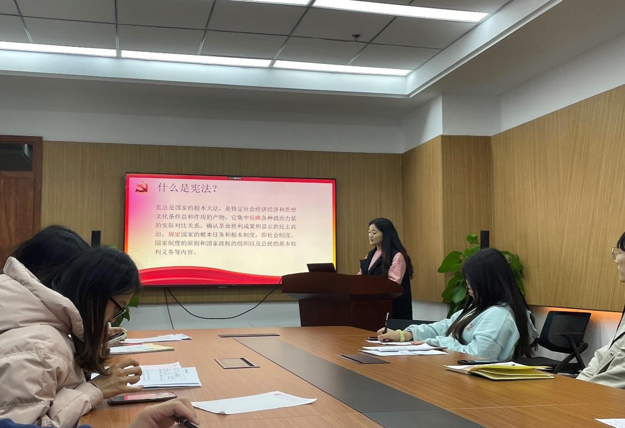 其次是开展“国家宪法”学习活动。2021年12月4日是“第八个国家宪法日” 宪法是国家的根本大法,新时代推进全面依法治国,需要推动宪法和法律学习宣传常态化、制度化。宪法与我们息息相关,刘倩说道:“宪法是是我国治国安邦的总章程,全社会应该增强宪法意识,学习宪法知识,弘扬宪法精神,知宪法于心守宪法于行!”与会每位党员表示对宪法有了更深入的认识,要知法、懂法、守法。