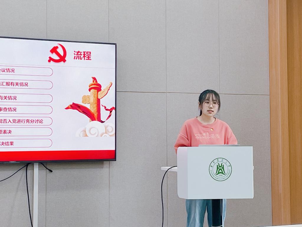 研究生第七党支部于工科楼122会议室召开十一月主题党日暨预备党员转正会议,支部党员24名到会参加,会议由李温蓉同志主持。