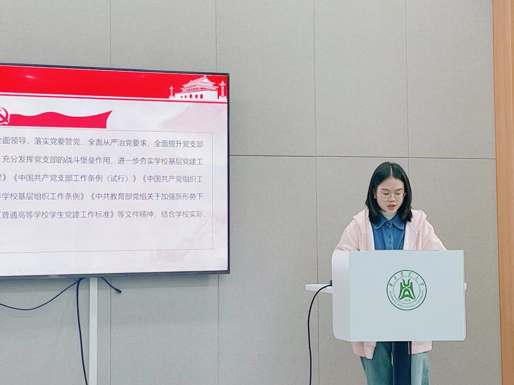 党支部工作细则(2021年修订)》,她从制定工作细则的背景引入,重点解读了党支部工作必须遵循的五项原则、党支部建设需要着力做到的“七个有力”以及党支部应该承担的八项基本任务。研究生党员们认真研读、专心聆听、学习交流、共同进步。《细则》的学习,给党员们的教学工作明确了目标,指明了方向,理清了思路,同时也督促全体党员时刻不忘给自己充电。