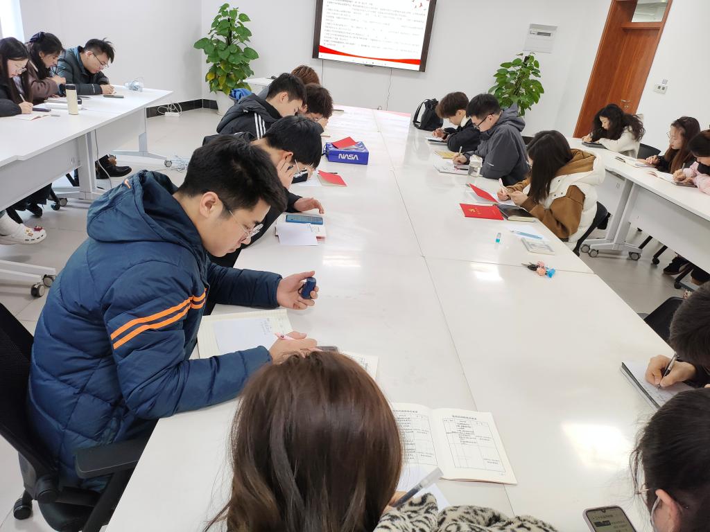 会议最后,为提高党员党性修养,增强理论知识学习,研究生第七党支部进行了党相关知识的小考查,党员同志们奋笔疾书,对答如流,展现出扎实的知识功底和饱满的精神风貌。