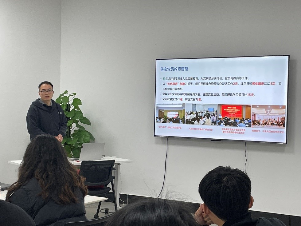 随后,刘涵斐就过去一年研究生党建工作进行了汇报。他指出,党支部书记在管理支部成员时要进一步加强落实党员教育管理,强化思想引领。对于各个支部的预备党员教育、考察和转正工作要进一步加强规范管理,要加强预备党员基本理论的学习和考察。今年是党的二十大开局之年,支部书记对支部的各项工作的管理要更加认真,更加规范。
