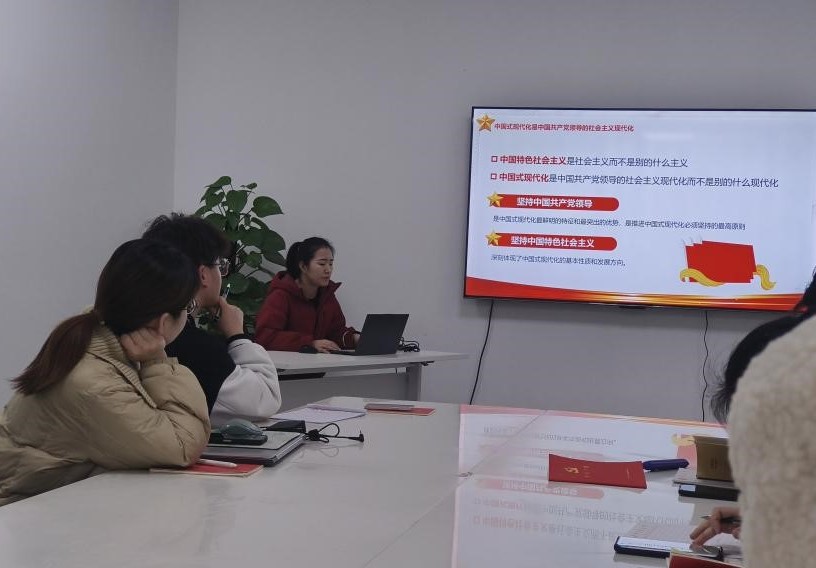 随后,陈梦婷同志以PPT汇报及视频分享的形式,详细介绍了习近平总书记在开班式上的重要讲话内容,推进中国式现代化,是一项前无古人的开创性事业,必然会遇到各种可以预料和难以预料的风险挑战、艰难险阻甚至惊涛骇浪,必须增强忧患意识,坚持底线思维,居安思危、未雨绸缪,敢于斗争、善于斗争,通过顽强斗争打开事业发展新天地。第四党小组的同志分享了视频“什么是中国式现代化”,告诫我们要深刻认识中国式现代化的本质要求和中国特色的内在联系,牢牢把握推进中国式现代化的重大原则,为全面推进中华民族伟大复兴提供坚强保障、凝聚强大合力。
