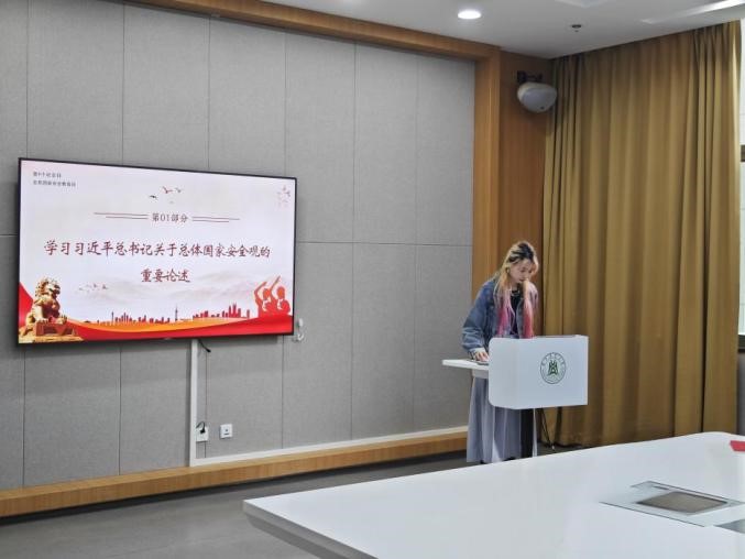 会议伊始,许佳隽同志带领大家学习了习近平总书记关于总体国家安全观的重要论述,介绍了总体国家安全观的核心内容,即“五大要素”和“五对关系”,并对贯彻落实总体国家安全观的重大意义进行阐述。该环节的开展进一步不仅增强了支部党员们对于国家安全意识的认知,还提高了大家对于维护国家安全的使命感和自觉性。