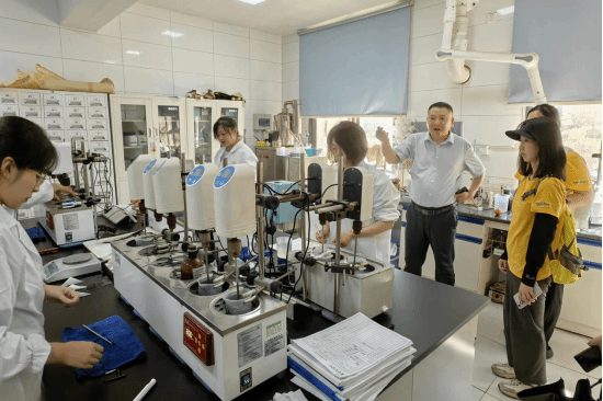 队员们在强森魔芋工作人员带领下参观液体化检测实验室 詹淘淘摄