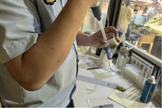 第二天上午,市场监督管理局带领志愿服务队深入体验农产品农药残留检测及小作坊监管工作,亲历食品检测一线,见证 “舌尖上的安全” 守护行动。上午 9 点,百信生鲜超市人头攒动。位于超市中央的快速检测站,是守护华容百姓饮食安全的一道重要保障。在农产品农药残留检测领域,快速检测仪成为便捷高效的筛查工具。剪碎菜叶、浸泡进缓冲液、放入快检仪检测有机磷农药残留……检测人员依据规范流程向志愿队逐一展示讲解。“一旦数据异常,不合格信息将立刻上传监管平台,涉事农产品将暂停销售并复检,”郑从春向队员们解释道。同时,快检结果与专业机构的检测报告相互补充,将全方位保障农产品安全流入市场。