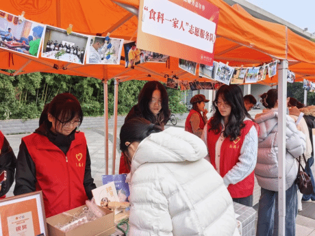 “食科一家人”志愿服务队积极投身雷锋月公益市集,志愿者们身着红色马甲,在大学生活动中心前端出美食、摆出教具,用最生动、最亲切的方式,将平日里略显枯燥的食品安全与营养健康知识,化作一颗颗科普的种子,悄然播撒进过往师生的心田,用实际行动为雷锋精神写下温暖而充满活力的新时代注脚。