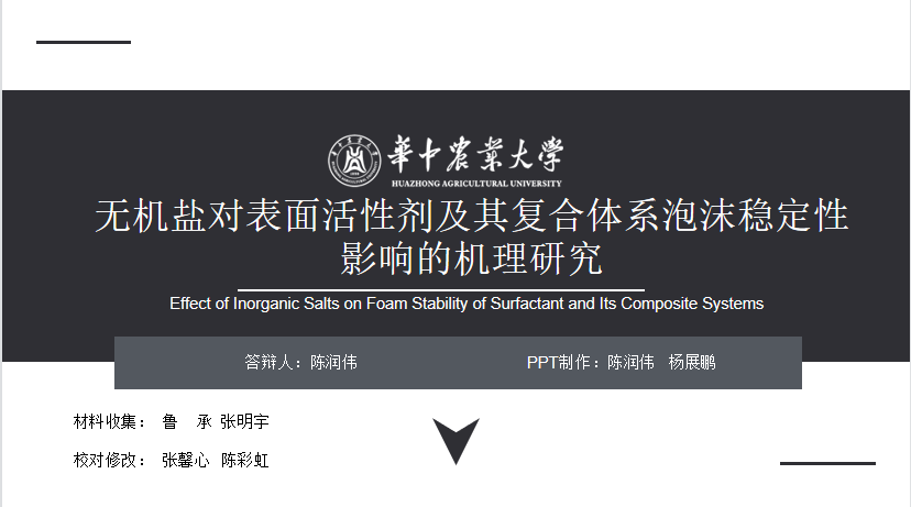 来自第二组的陈润伟同学分享的是《无机盐对表面活性剂及其复合体系泡沫稳定性影响的机理研究》一文。高霞对其讲解的结构框架提出建议:“讲解时,要注意段落之间的衔接,可以对每一部分的内容进行小结,这样会更加有利于理解;实验流程部分,也最好以思维导图的形式进行展示。”