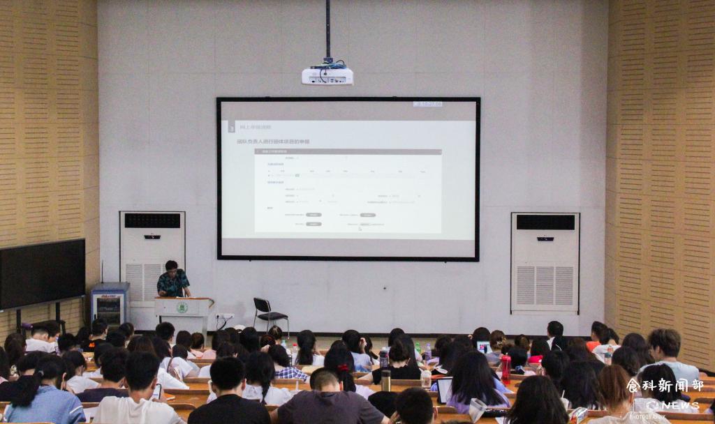 青年志愿服务中心负责人蔡泽,从暑期社会实践具体工作安排、社会实践项目类型、网上申报流程、其他注意事项四个方面向大家进行了详细讲解。其中,他着重向大家介绍了此次社会实践工作的流程安排——活动宣传、项目申报、评审、实施及总结,以及各阶段所对应的具体时间段。针对不同类型的社会实践项目对应的实践专项,他也进行了简单的介绍。同时,他还向同学们强调了各阶段所需上交材料的具体要求、提交方式、截止时间等具体细节。