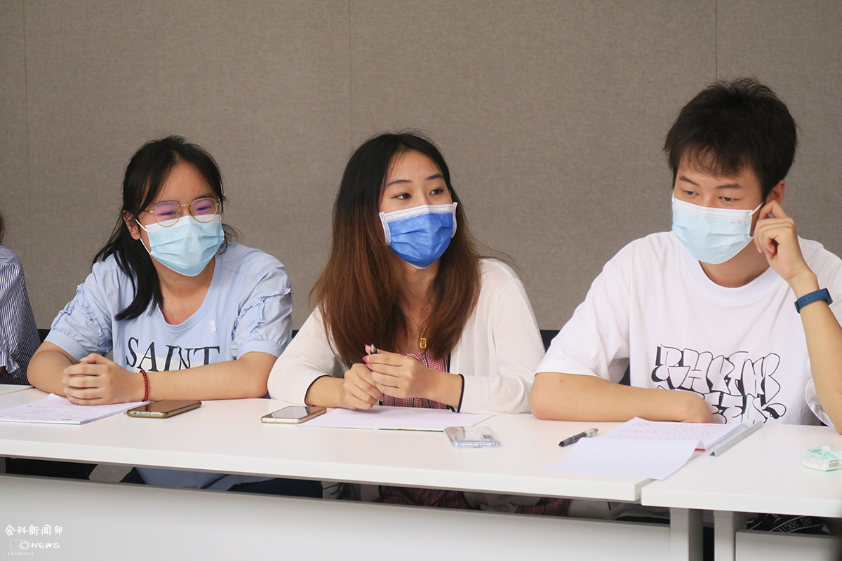 在自我评述环节,戴紫嫣同学讲述了她学习、比赛、生活以及参加学生工作的经历与心得体会。在提及她因爱好摄影参加校园摄影展时,青平要求同学们在做好学习这项基本功的同时,也要培养自身的兴趣爱好,做一个全面发展的人。随后,鄢玲荟、崔兆宇和宋冠辰等人先后分享了他们上一学年的收获,每个人丰富的大学生活也都得到了在场老师的肯定和建议。
