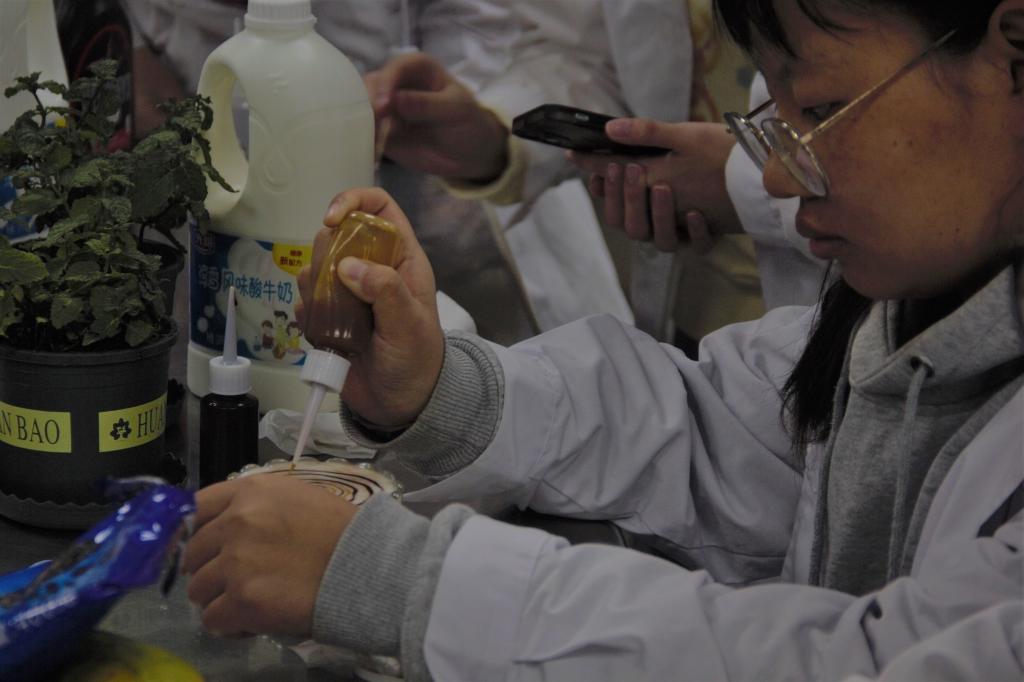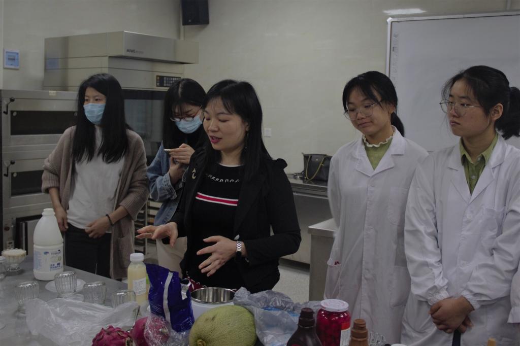 老师们授课完成后,来自“喵奶总动员”队的杨红燕同学表示:“在今天的产品制作过程中,我感受到了老师的用心与负责,教学过程中的随机提问更是起到了巩固专业知识点的作用,此外,不同品种酸奶的制作使我对比赛有了不一样的理解,老师强调的安全问题我也会与其他队员在之后的制作过程中严格落实。”