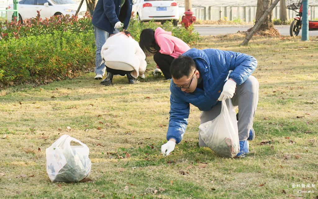 活动开始前,活动负责人在新工科楼一楼大厅向参加活动的党员们介绍本次活动的目的和具体内容,并为大家分配手套与垃圾袋。随后,党员们自行组队在院楼附近进行捡垃圾、除杂草等清理和维护工作。清扫的过程也许单调乏味,但大家的动作一刻不曾停歇,草地上、花丛中都是他们忙碌的身影。所有人的目光都落在地面仔细搜寻,不放过任何一片垃圾。大家自主分工,有人拎垃圾袋,有人动手清除,互帮互助,相互配合,整个过程充满欢声笑语,为活动增添了不少趣味。