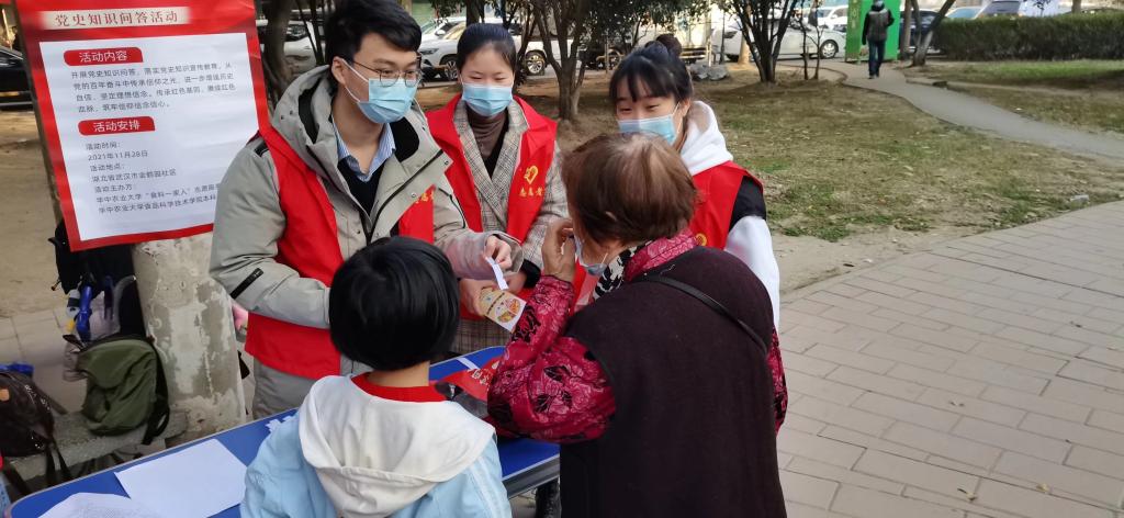 本科生第二党支部携手“食科一家人”基金会,前往洪山区和平街金鹤园社区,开展“下社区,讲党史,办实事”的志愿服务活动。