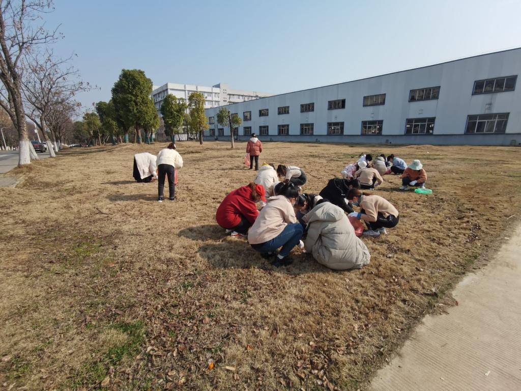清洁责任区。教工党支部在杨铁贵的带领下,负责杂物清理工作。他们手提垃圾袋,夹起沿路杂物,还原草坪原本的清洁。学生则分组行动,进行杂草清理工作。杂草呈窝状,志愿者们戴着手套顺着根部用力即可连根拔起。在此过程中,志愿者们需长时间保持下蹲动作,这是对他们体力及耐力的考验。待到夕阳西下,此次历时两小时的杂草清理工作画上了圆满的句号。