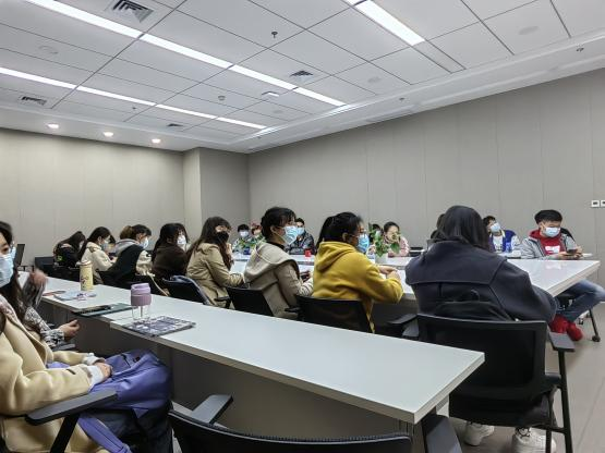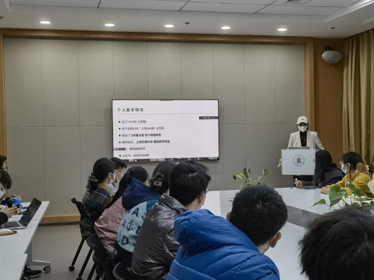 食安1802班邓婉清、食安1804班赵丹杨、食工1802班马雪丹及食工1804班王梦娜四位同学受邀进行保研分享,报名参加线下活动的二十位同学到场参会,学科部负责人戴浩驰主持活动。