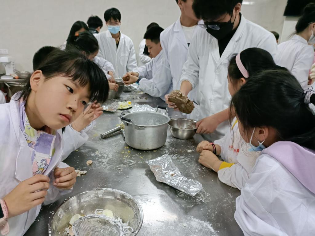 青年志愿服务中心举办的“趣味饼干制作”志愿活动在新工科楼烘焙坊进行。本次活动由志愿者带领华农附小的学生们动手制作玛格丽特小饼干,旨在让小朋友们体会烘焙乐趣,领悟劳动之美。