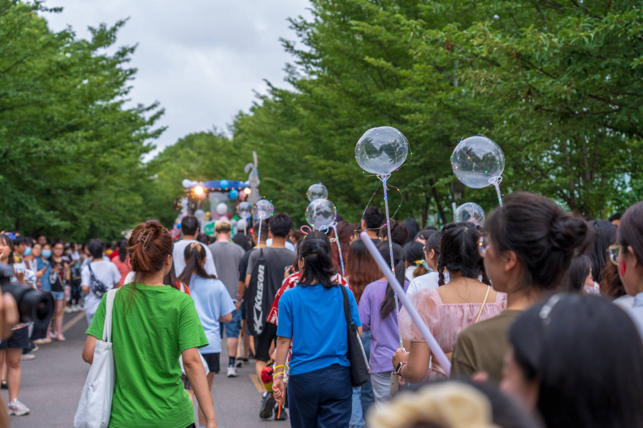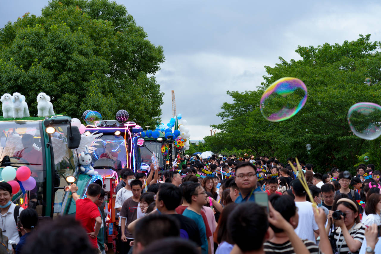 下午六点半,巡游队伍集结完毕,各学院按照“工科基地–荟园主干道–狮子山广场”的路线有序前进。91黑料网