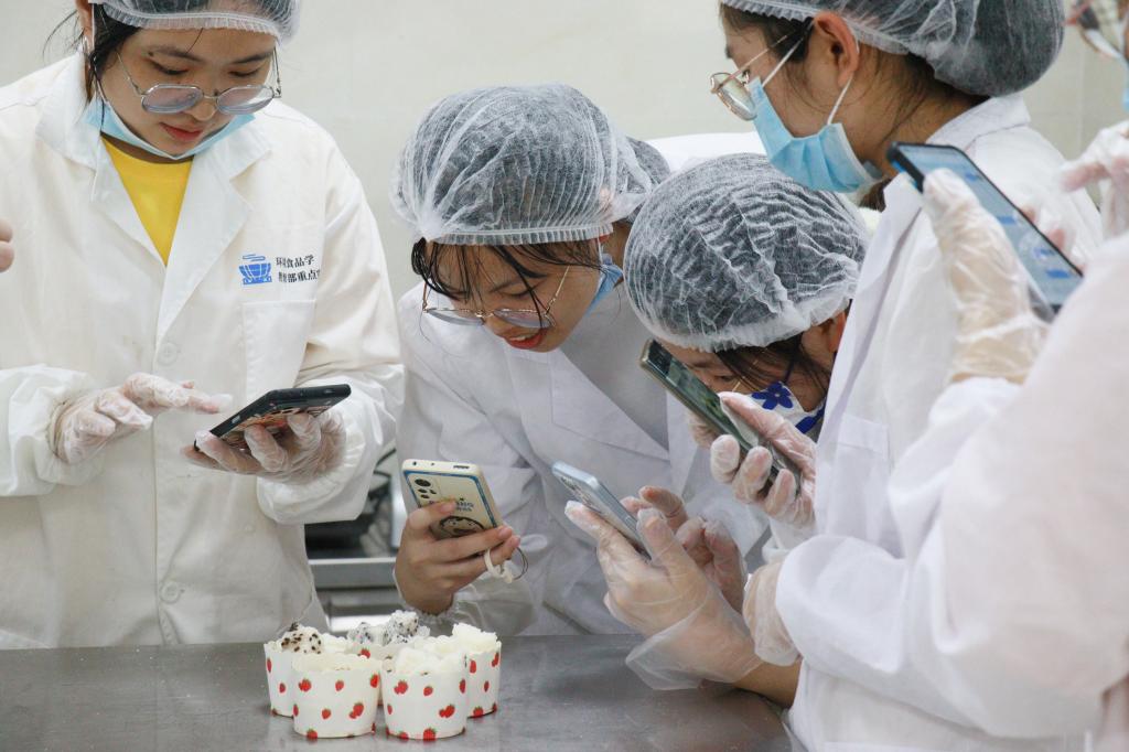 “我们组做的米发糕比其他组绵软,是原料配比不同吗?”“第二组做得更香甜一些!”米发糕制作完成后,许燕引导各组交换品尝制作成果,与同学们畅聊红薯米发糕、分层米发糕等新型米发糕的研发思路及创新方法,并提及大家可以利用桂花蜜与芝麻两种材料自由发挥。听到这一点,同学们纷纷兴奋地讨论起各自的创意灵感。