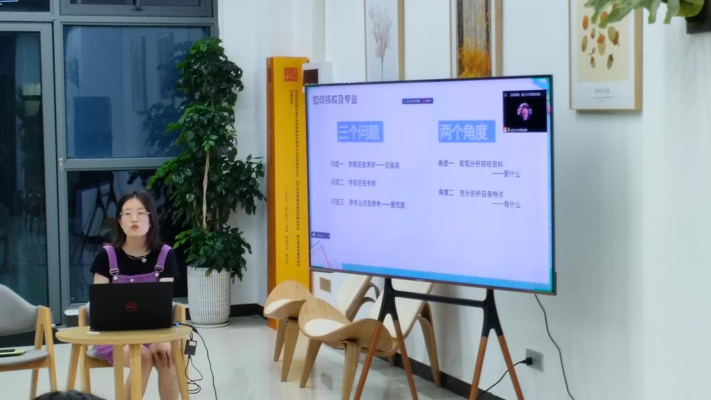 “如何选择考研校及专业”,张诗笛首先从这个问题展开分享,她建议大家在报考前,结合自身情况明晰“三个问题,两个角度”。三个问题分别是,选择院校时求稳还是求好?选择学说还是专硕?报考时选择原专业还是跨专业?两个角度:客观分析院校资料、充分剖析自身特点。接下来,学姐就“如何合理安排学习任务”为大家提出了四条建议。分别是:合理制定学习目标、了解自己的优劣势和学习习惯、不要与同学过度比较、学习时先复盘再计划。最后学姐强调大家在备考过程中要努力调整心态,保持情绪稳定,接受并正视焦虑,适当安排休息时间。