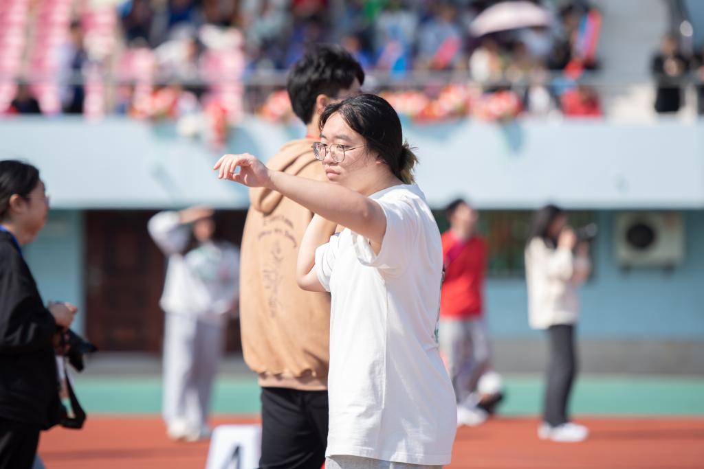 食品科学与工程类2106班的杨雯静在女子铅球比赛项目中,以7.66米的成绩夺得铜牌,这也是食科院在本次运动会中收获的第一枚奖牌。