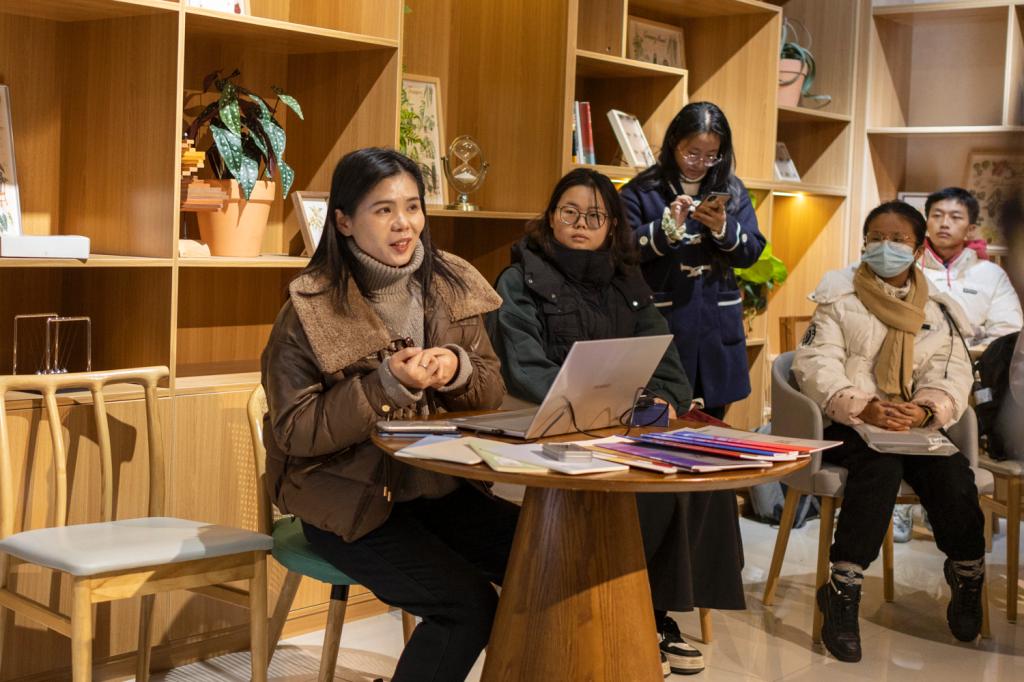食工2102班的吴镇宇分享了自己的感悟并提出了关于日本留学的疑问:“在适应新的学术环境和文化的过程中,我认为语言沟通是一个挑战。在实际学习和生活中,如何更好地突破语言障碍,融入当地学术圈和社会呢?” 基于此,徐昕儒从语言学习、组建学习小组、利用在线资源、参与学术圈活动等多方面提出建议,并希望同学们能够更从容、自信地面对语言沟通的挑战,顺利适应异国生活。