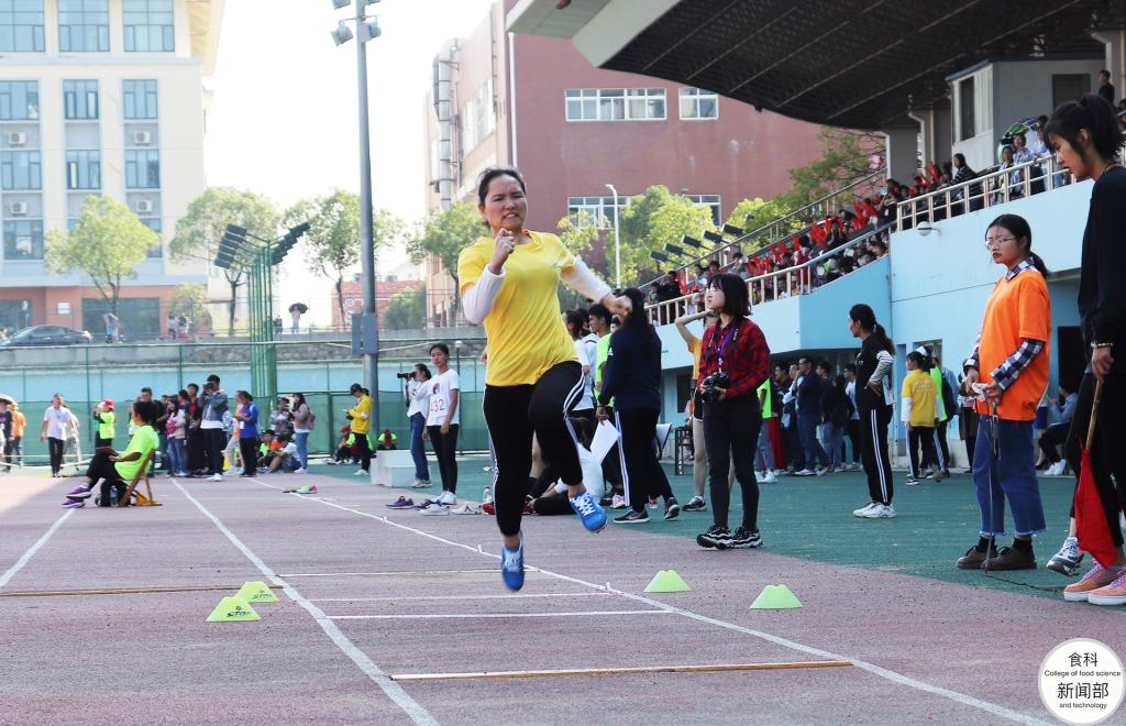 食研1905班的欧文文凭借8.92米的优异成绩荣获女子三级跳比赛第四名。