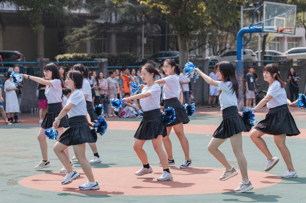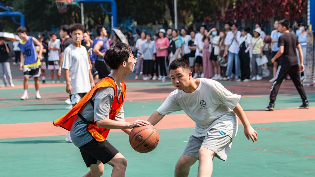 在第一运动场举行新生篮球交流赛暨啦啦操比赛,21级的新生们以班级为单位参与比赛。