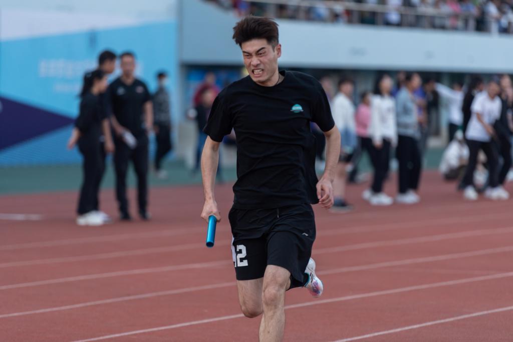 “我是首次参加4×100米的接力赛,初次参赛的经历让人难忘同时也更让人紧张。”刘涵斐老师说道。但压力会转变为动力,在枪响之后,他帅气起跑,完成第一棒的完美交接。第二棒占福朝老师在此前有过参赛的经历,因此赛前他少了几分紧张,多了一些沉着,冷静接棒,奋起直追。作为食科院教工中的运动健将,第三棒张卓老师在弯道时展现了他卓越的实力。团队最后一棒许宝丹老师也是多次参与接力比赛,在最后的冲刺中,他展现出了惊人的实力,最后以与第四名仅差0.03秒的成绩拿下团体第五名,结束比赛。