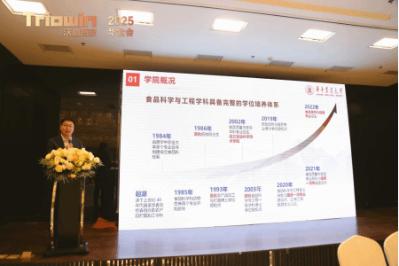 上海沃迪智能装备股份有限公司董事长赵吉斌校友在致辞中对母校老师、嘉宾、与会校友表示诚挚的欢迎。他表示,“华食会”既是校友情谊的凝聚,更是产学研深度融合的契机。他相信,本次会议将持续汇聚校友智慧与资源,为学校“双一流”建设、行业创新突谱写新时代的辉煌篇章。
