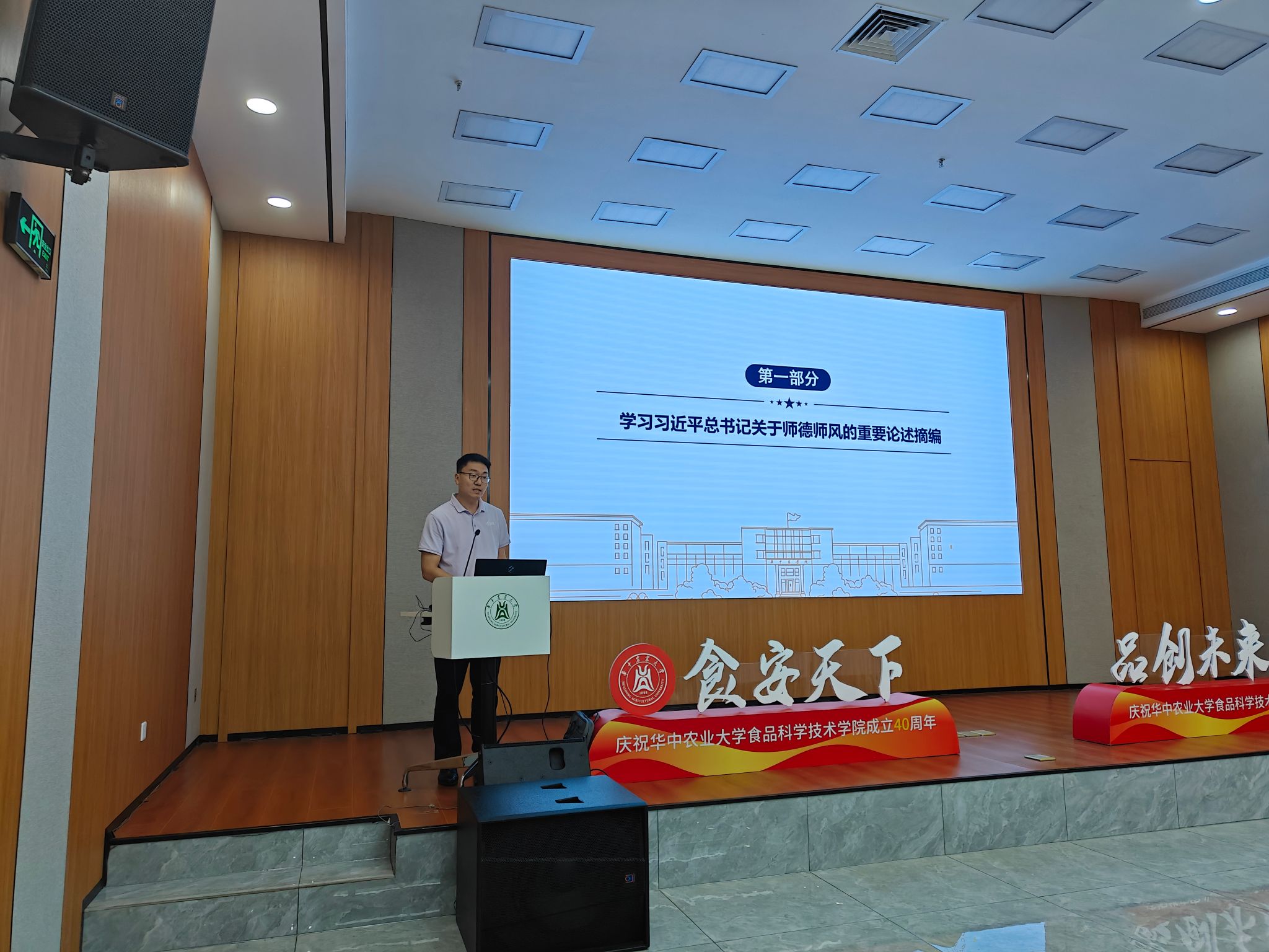 师德失范行为处理办法(修订)》等文件内容,结合习近平总书记关于师德师风的重要论述,深刻阐述了师德师风建设的重要性。他强调,师德师风是教师队伍建设的核心内容,关系到学院教育质量和建设发展的重大问题,需要常抓不懈,久久为功。他希望全院教师能够争做“四有”好老师,努力成为狮山“大先生”。